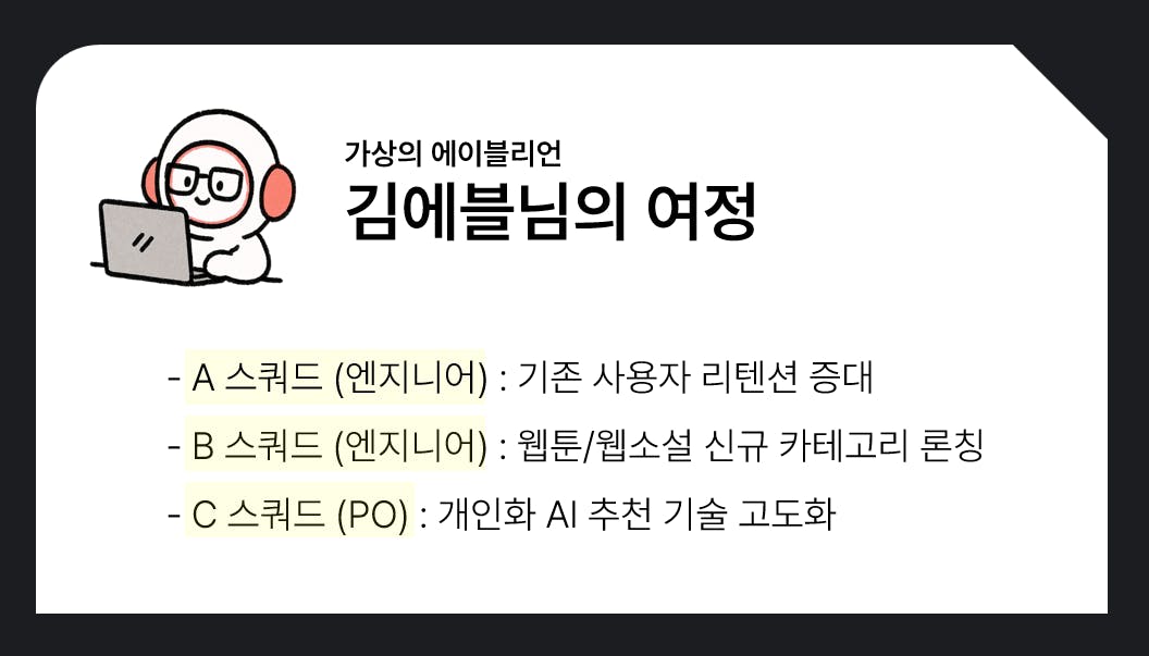 실제로 이번 25년 8월, 새로운 문제들이 정의되면서 2명의 팀원이 PO 역할을 맡게 되었고, 이를 통해 역량을 넓힐 기회를 얻었습니다. 이처럼 문제를 해결하는 경험은 자연스럽게 개인의 성장으로 이어집니다.
